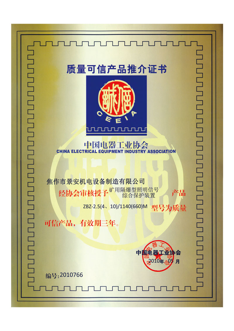 礦用巷道燈用本安電源專(zhuān)利證書(shū)
